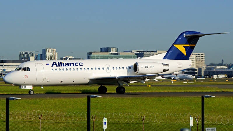 Alliance Airlines F70 VH-JFB (11521) recently lost the dark blue belly that it still had since its service with Ford Motors and now carries the airline’s standard livery (Bernhard Jensch; Sydney, 3 October 2019)