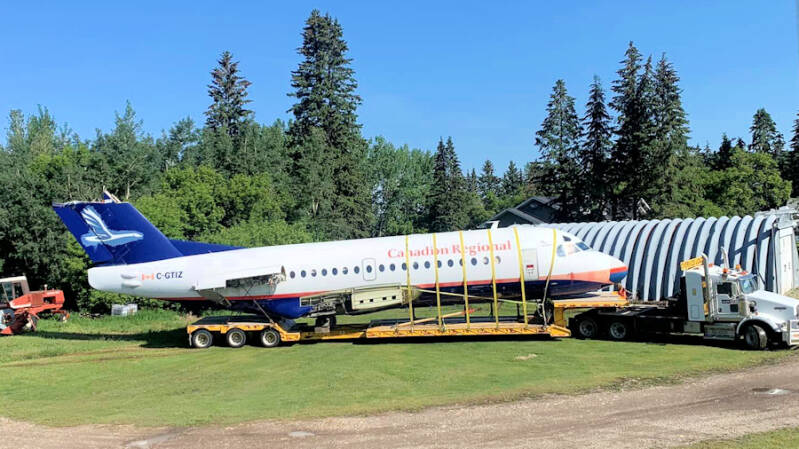 Three pictures from a unique transport. A group of F28 enthusiasts has successfully completed the plan to move a retired F28 from Saskatoon, Saskatchewan to Innisfail, Alberta. It concerns C-GTIZ (11099), a F28-1000C that still carries the Canadian Regional ‘Prouds Wings’ livery. The aircraft, affectionately called TIZZY after the registration, was withdrawn from use in 2002 and was stored over 20 years at Saskatoon, together with many sister ships. In 2020 a private person bought the aircraft, with the intention to bring it to his farm in Alberta. That plan has now been realized. After some external cosmetics the F28 will be on display in the original colors at the owner’s property. The pictures illustrate key phases of the project: loading on a truck in Saskatoon, transport through the Canadian countryside and arrival at final destination Innisfail. (Arnold Begeman and Alex Praglowski on Facebook; Canada, June 2023)